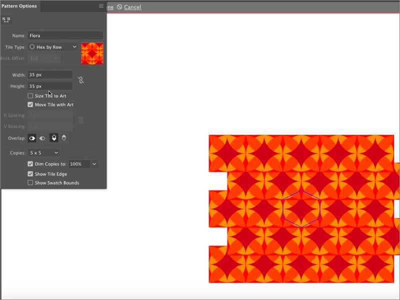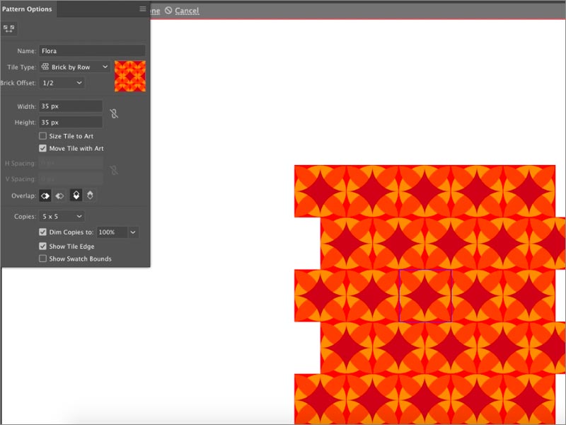 雖然此步驟是可選的,但建議您為模式提供新名稱,以防止出現(xiàn)任何混淆。如果您已經(jīng)擁有模式的現(xiàn)有名稱,您也可以選擇修改它。您可以在“圖案選項”對話框中執(zhí)行此操作。此外,根據(jù)您自己的設(shè)計首選項,您可以選擇修改“圖案選項 ”對話框中的所有其他選項。這些選項包括寬度,高度,H間距,V間距,重疊,副本等。
