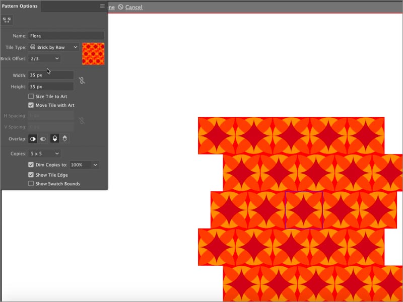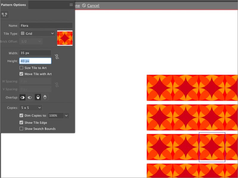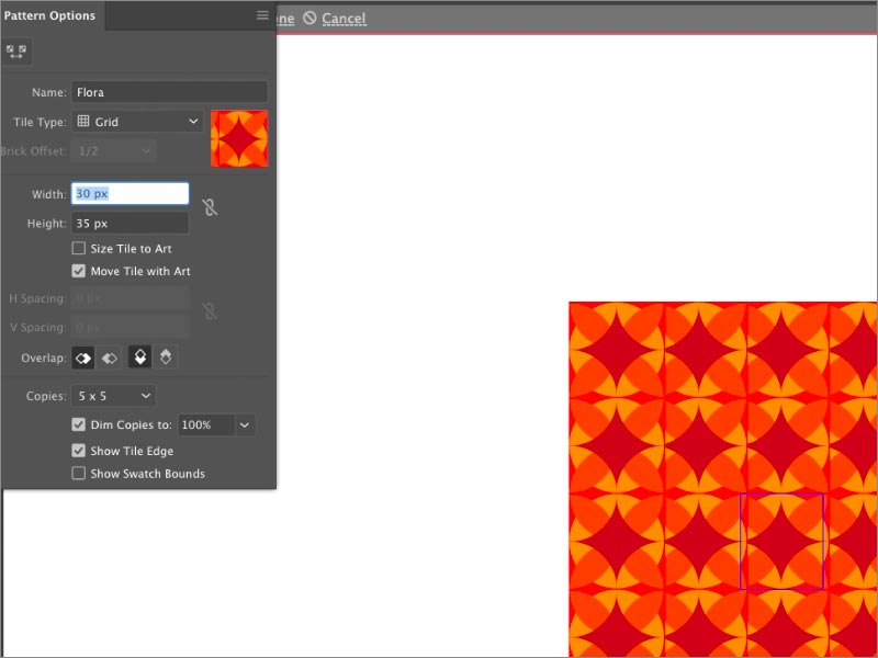 通過選擇此選項,您的屏幕將顯示已重復(fù)創(chuàng)建圖案的圖案的單位部分。